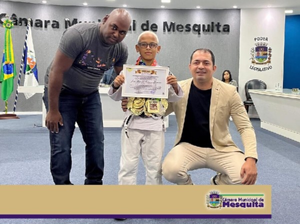 Durante a Sessão, o vereador e vice presidente da Casa, Dudu 2D, concedeu Moção de Congratulações e Aplausos ao jovem atleta de jiu-jítsu, campeão da Copa Mesquita, João Miguel Ribeiro Martins; pela sua representatividade, sendo uma inspiração para outras crianças e e jovens da nossa cidade.