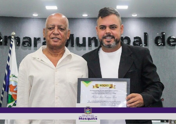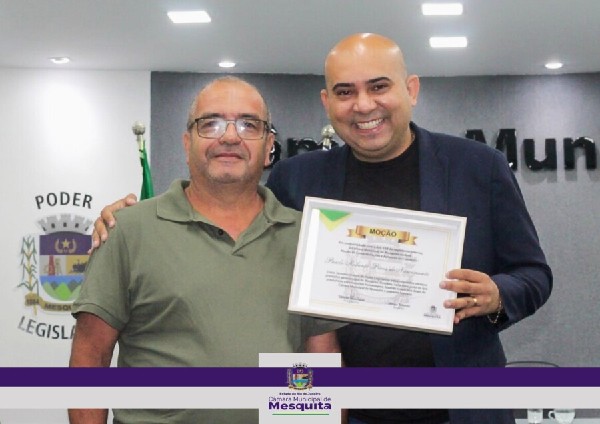 Durante a Sessão, o vereador Diogo talento concedeu Moção de Congratulações e Aplausos ao comerciante, Sr. Paulo Roberto Pires do Nascimento; em reconhecimento aos seus relevantes serviços prestados à nossa cidade.