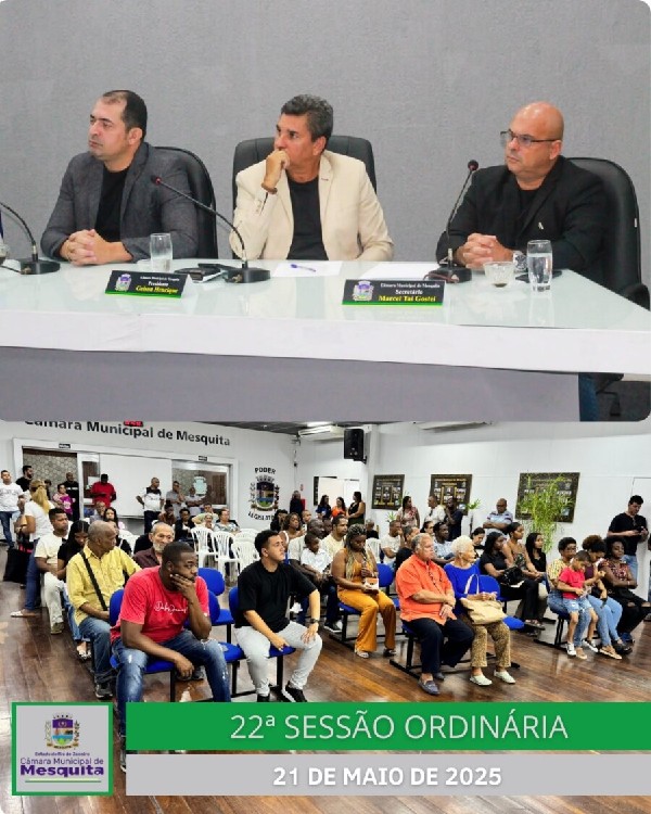 Na 22ª Sessão Ordinária da Câmara Municipal de Mesquita, realizada em 21 de maio de 2025, foram protocolados: