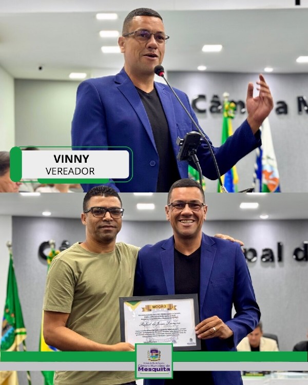 Durante a sessão, o vereador Vinny concedeu Moção de Congratulações e Aplausos aos senhores Robson da Costa Evaristo, Everton dos Santos Azevedo e Rafael de Jesus Ferreira, em reconhecimento à significativa contribuição de cada um para o crescimento e desenvolvimento da nossa cidade.