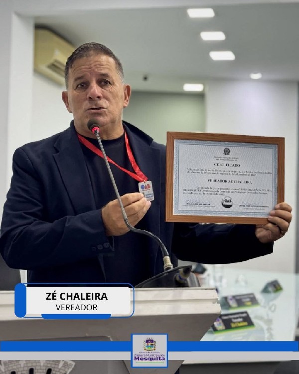 Durante a sessão, o vereador Zé Chaleira usou a tribuna para agradecer à OAB 64ª Subseção pela homenagem recebida em alusão à 1ª Cãominhada de Mesquita, realizada em defesa dos animais.