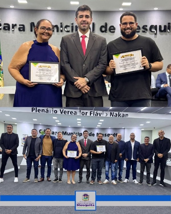 Durante a Sessão, o vereador e líder de governo, Raphael Duarte, entregou uma Moção de Congratulações e Aplausos à Sra. Ana Paula Januzzi Azevedo e ao Sr. Victor Osvaldo Januzzi de Mendonça. A homenagem, prestada a mãe e filho, reconhece a dedicação e a relevância do trabalho social que ambos desenvolvem em nossa cidade, pautado pelo respeito e pelo compromisso em ajudar ao próximo.