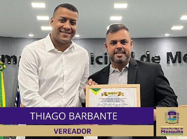 Ainda na ocasião, o vereador Thiago Barbante fez a entrega de Moção de Congratulações e Aplausos ao Sr. Juan Pablo Serra da Silva. Seguido pelo vereador Diogo Talento que, também, concedeu Moção de Congratulações e Aplausos a influenciadora Digital Nandara Pedro Viterbo dos Santos.
