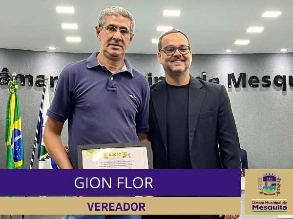 Durante a Sessão, o vereador Gion Flor fez a entrega de Moção de Congratulações e Aplausos Sr. Fernando Barbosa da Silva.