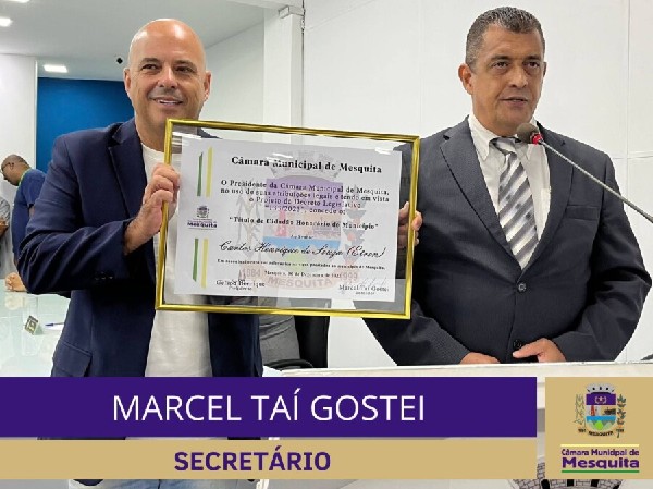 O secretário da Casa, vereador Marcel Taí Gostei, concedeu Título de Cidadão Mesquitense ao Sr. Carlos Henrique de Souza, o Etron, pugilista, professor de boxe, e grande incentivador da prática do esporte em prol da educação e profissionalização de crianças e jovens. Concedeu, também, Título de Cidadão Mesquitense ao Sr. Antônio Tardit Júnior, comerciante da nossa cidade e um grande partícipe no processo da emancipação de Mesquita.