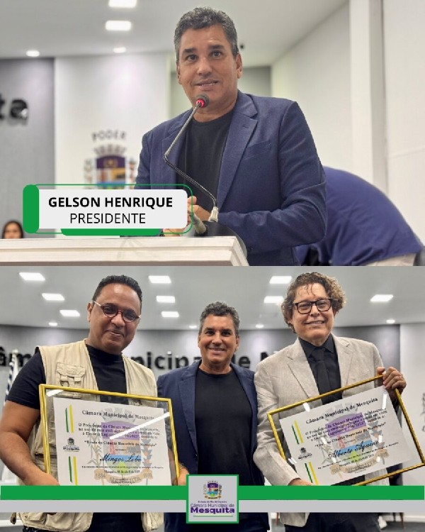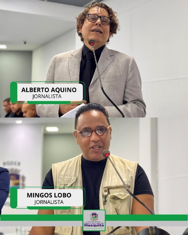Durante a Sessão Plenária, o presidente da Casa, vereador Gelson Henrique, fez referência ao Dia do Jornalista, comemorado ontem, dia 7 de abril, destacando a relevância dessa profissão para a política e o acesso à informação. Na ocasião, o vereador concedeu o Título de Cidadão Honorário do município aos jornalistas Sr. Alberto Aquino, colunista do Jornal Extra, e Sr. Mingos Lobo, repórter da Rede TV e assessor de imprensa da Secretaria Municipal de Cultura. A honraria reconhece a importância do trabalho de ambos na divulgação do nome de Mesquita e de toda a Baixada Fluminense pelo Brasil.