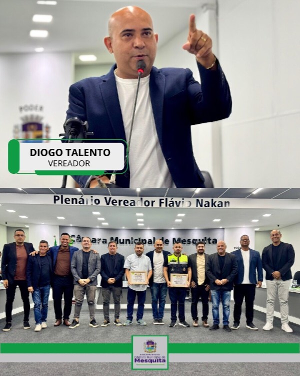 O vereador Diogo Talento concedeu Moção de Congratulações e Aplausos ao Coordenador de Trânsito de Nilópolis, Sr. Diego Luiz Oliveira R. Damião, e ao Sr. Jaime Nelly da Costa.