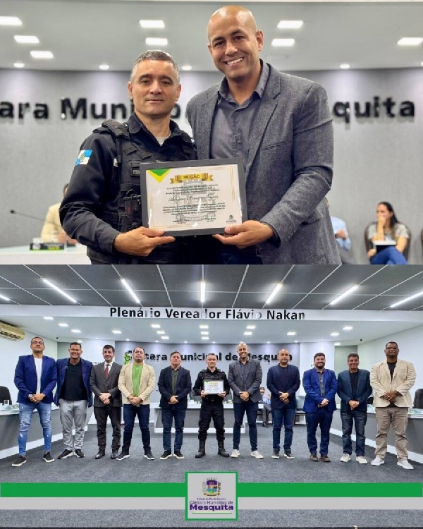 O vereador Tiago Kurtz concedeu Moção de Congratulações e Aplausos ao 2º Tenente da PMERJ, Sr. Adriano Pereira Nunes, em reconhecimento aos relevantes serviços prestados à corporação e à sociedade como um todo.