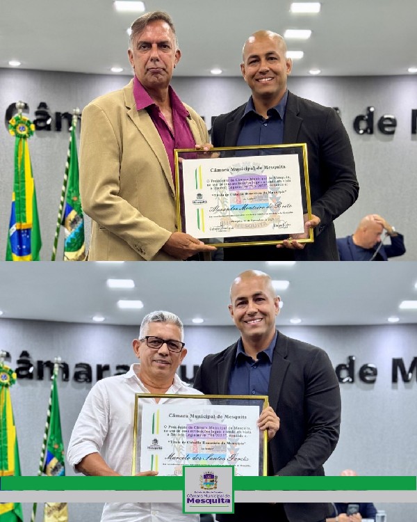 Também foi entregue, pelo mesmo vereador, outro Título de Cidadão Honorário ao servidor público Alexandre Monteiro de Brito, graduado em História e Letras, que atualmente exerce o cargo de Chefe de Gabinete do Deputado Estadual Rafael Nobre. Mesquitense de nascimento, Alexandre possui destacada contribuição em diversas campanhas políticas vitoriosas, incluindo a do próprio vereador que o homenageia.